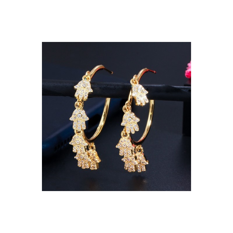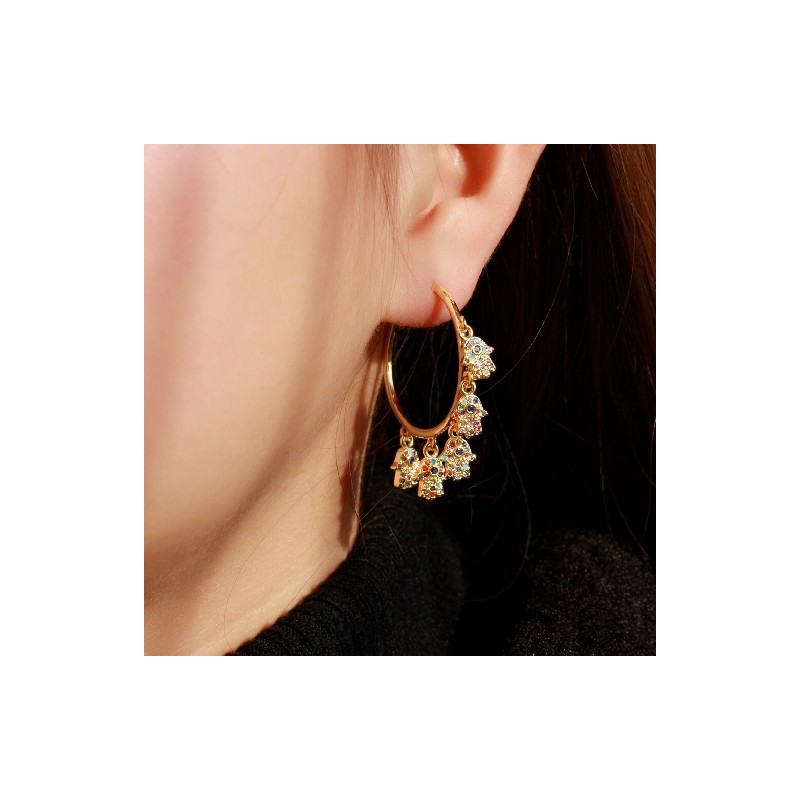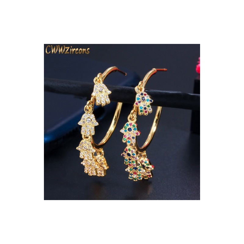 CWWZircons Többszínű török cirkónia kristály Lucky Fatima Hamsa kézi bűbájok kerek karikás fülbevaló nőknek ékszer CZ826