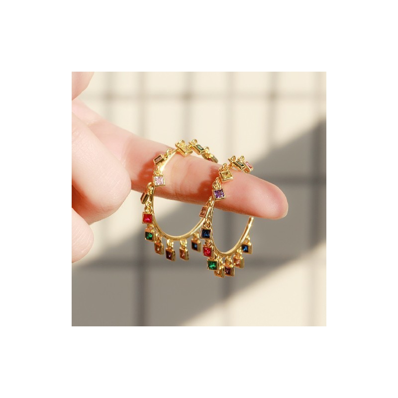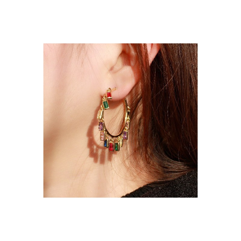 CWWZircons Chic arany színű szivárvány CZ nagy kör, kerek, lógó bojtos csípős varrások karika fülbevaló nőknek 2021 Boho ékszer CZ818