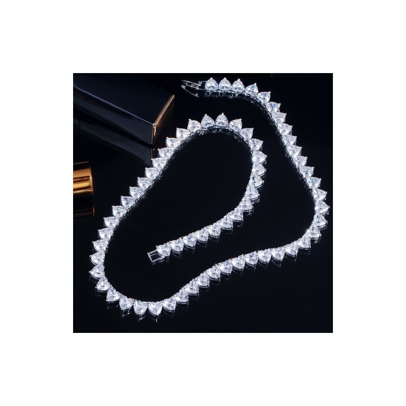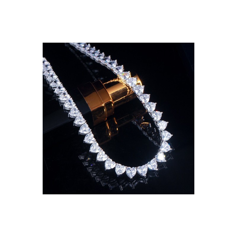 CWWZircons Shiny 5A Cubic Zirconia Heart Shape Iced Out Bling CZ Tennis Necklace for Women Fashion Hip Hop Party Jewellery CP082
