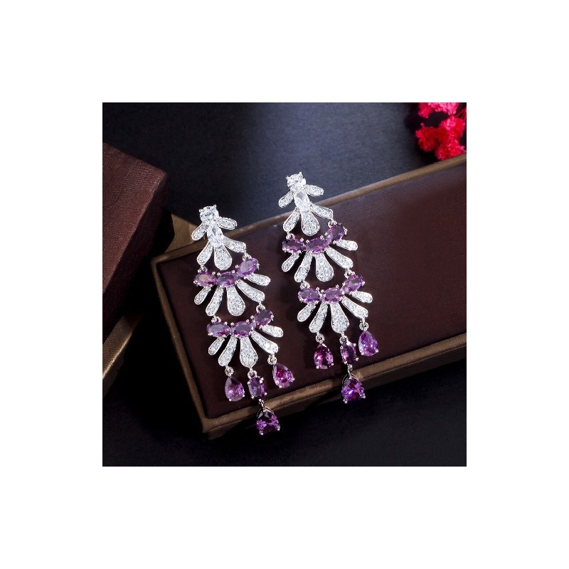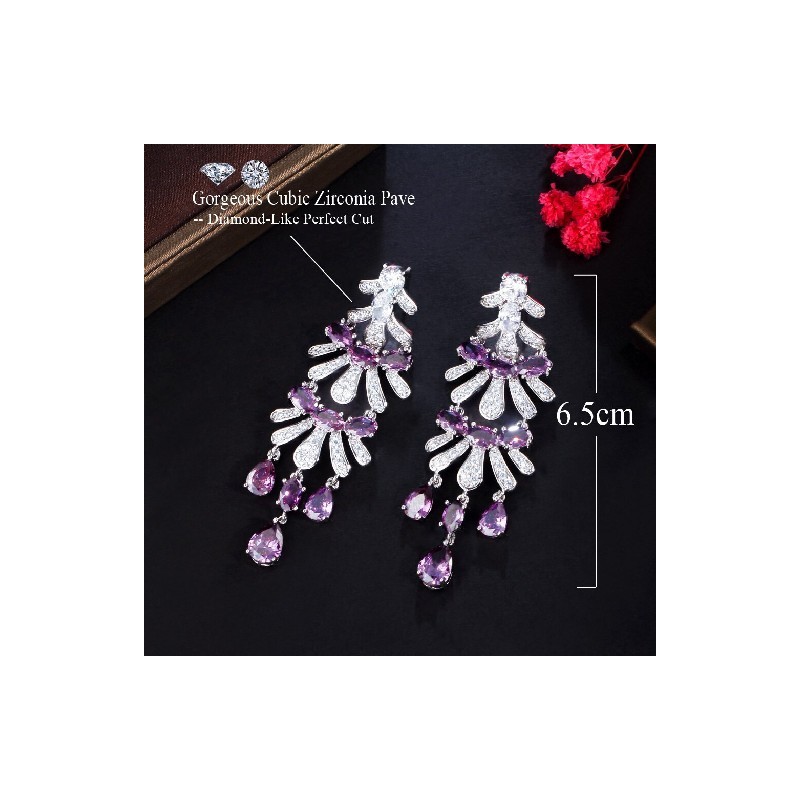 CWWZircons Royal Purple Cubic Zircon Stone Long Dangle Drop Women Engagement Wedding Party Chandelier Earrings for Brides CZ425