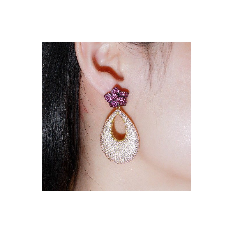 CWWZircons fényes zöld köbös cirkónia burkolt virág kerek, lelógó női hosszú parti fülbevaló menyasszonyoknak Ékszer ajándék CZ805