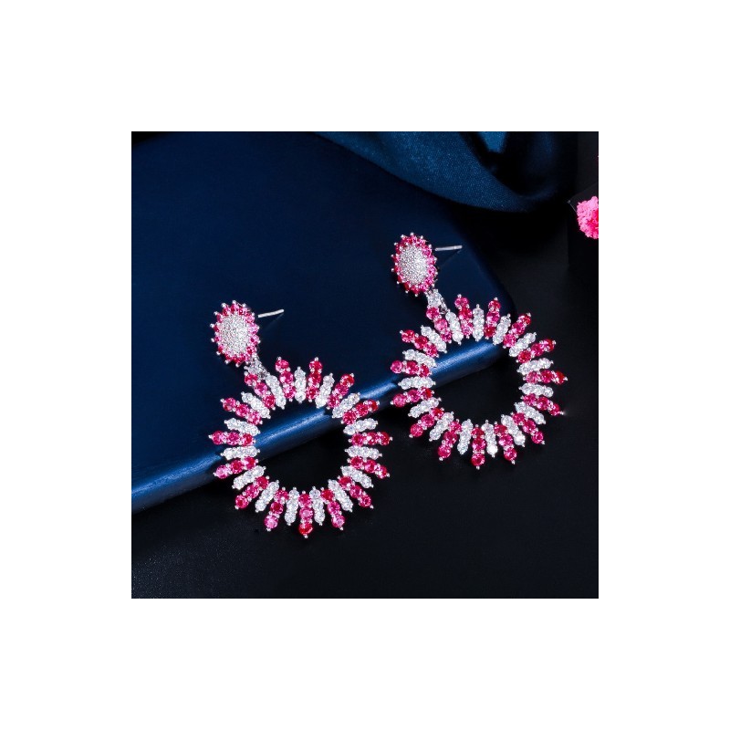 CWWZircons gyönyörű luxus márka kerek csepp nagy hosszú kék cirkónia kristály esküvői fülbevaló női ékszer CZ857