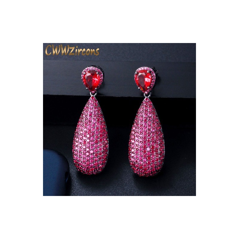 CWWZircons Luxury Micro Cubic Zirconia Paved Unique Black Gold Color Hot Pink Red Big Dangle Drop Party Earrings for Women CZ592