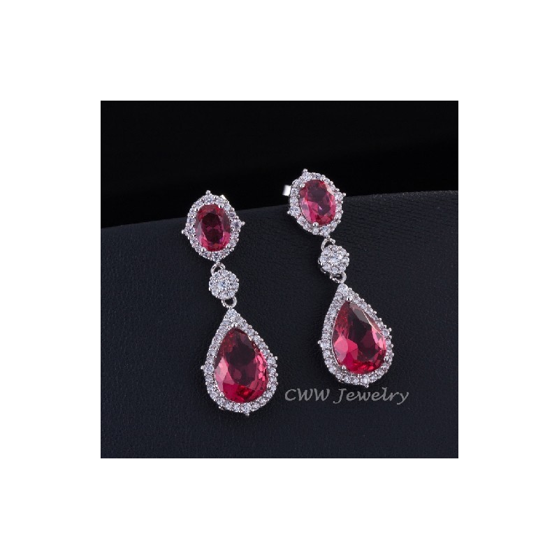 CWWZircons márka 7 színválaszték briliáns fehérarany színű divatos vízcsepp lila CZ kristály fülbevaló cirkóniával CZ370