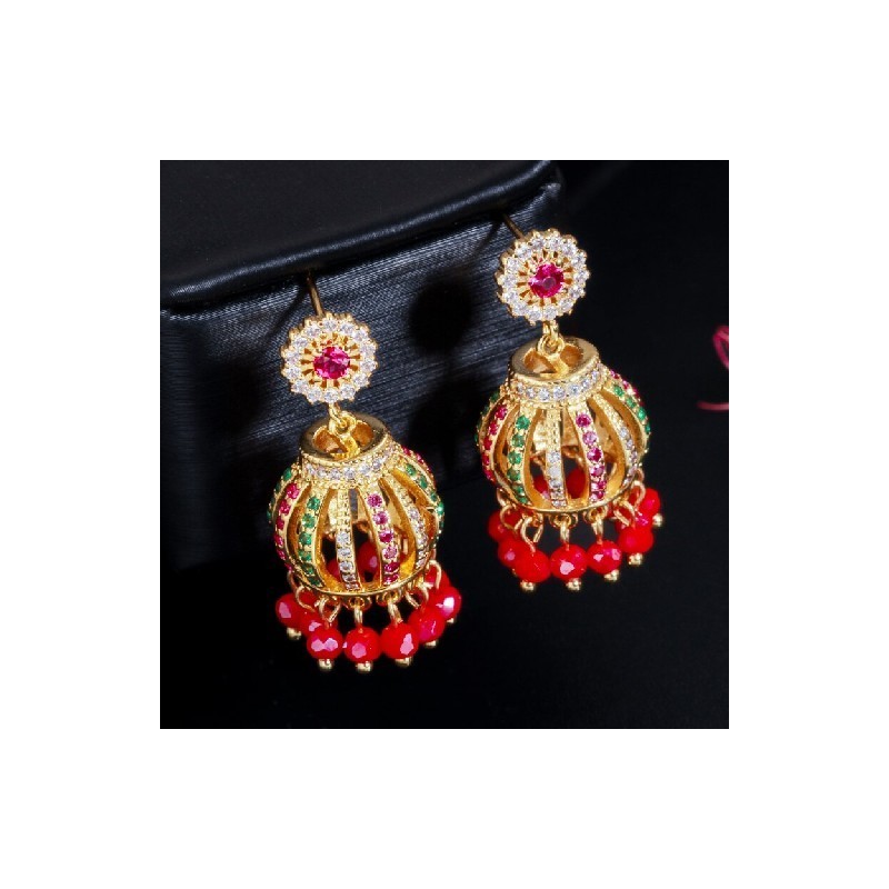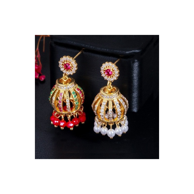 CWWZircons Vintage Design Cubic cirkónia indiai aranyozott lógó bojt cseppgyöngy gyöngyös etnikai női fülbevaló CZ611
