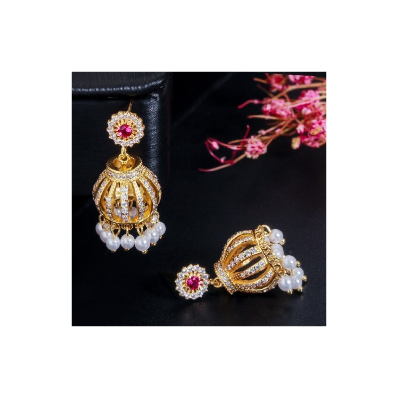 CWWZircons Vintage Design Cubic Zirconia Indian Gold Plated Dangling Tassel Drop Pearl Beaded Ethnic Earrings for Women CZ611