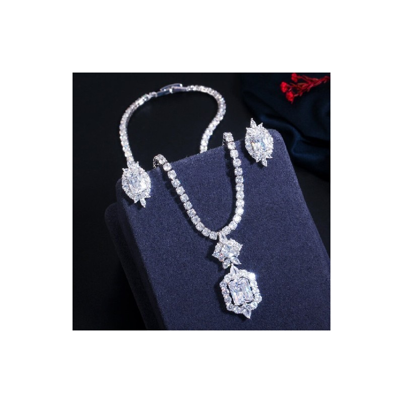 CWWZircons fényes sárga köbös cirkónia kőből készült kerek tenisz nyaklánc és fülbevaló szett női parti ruha ékszer kiegészítő T443