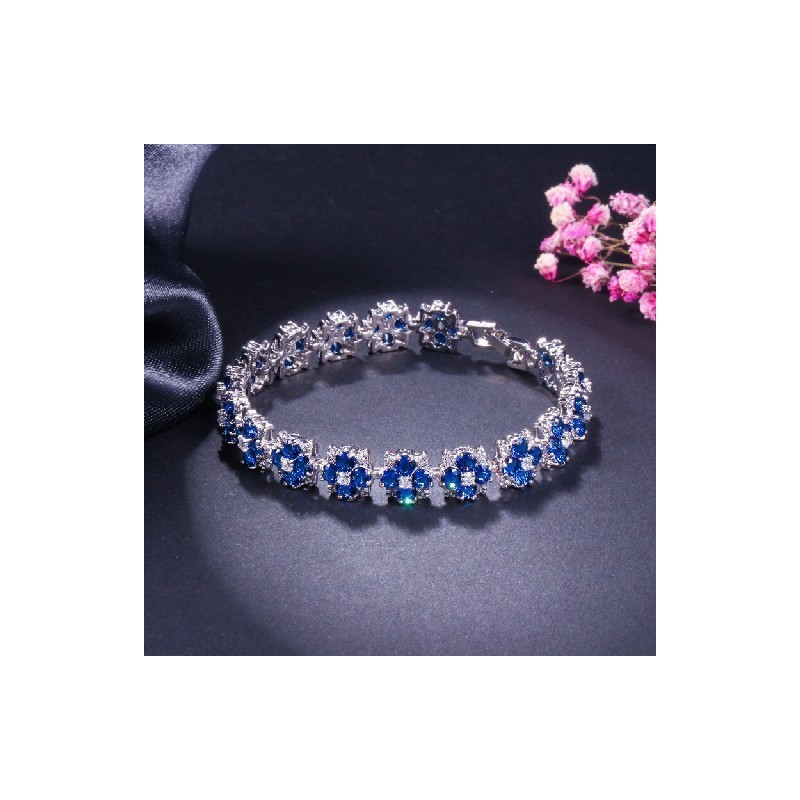 CWWZircons kiváló minőségű fehérarany színű láncszem CZ cirkónia kő és osztrák világoskék kristály karkötők nőknek CB187