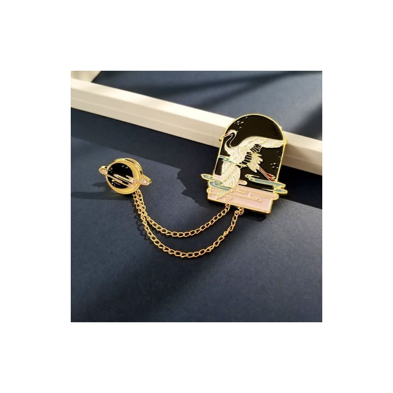 10 PCS / LOT White Crane Red Sun Chain Enamel Pins Custom Oriental Fantasy Brooch Lapel Badge Bag Cartoon Jewellery