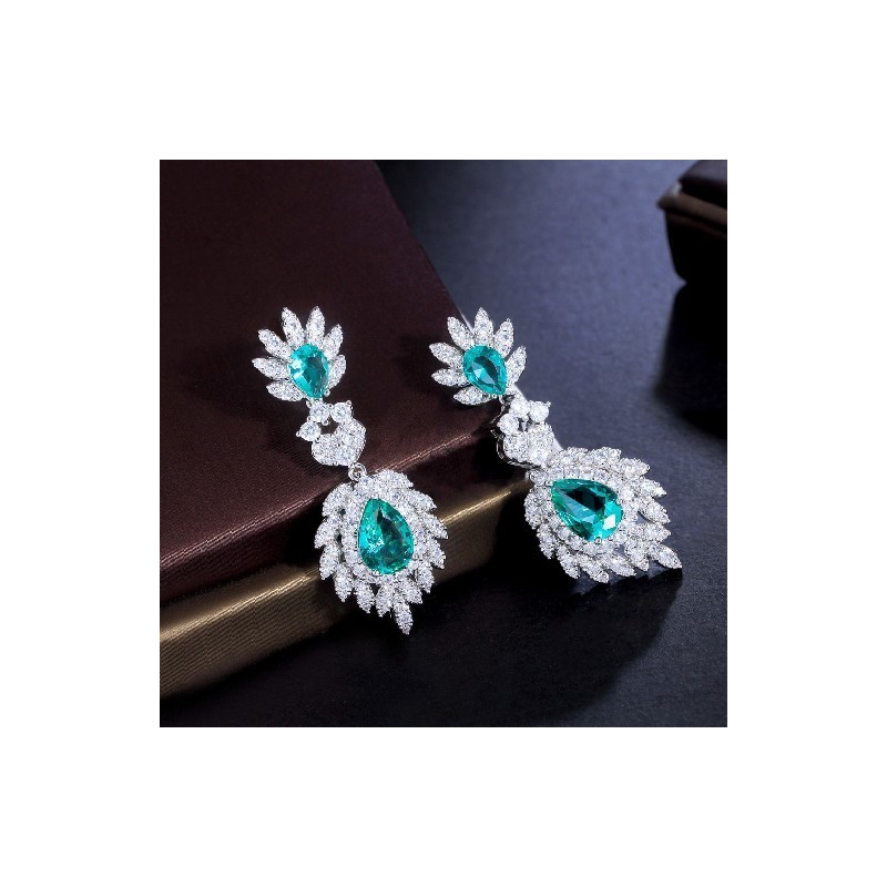CWWZircons Elegant Green Cubic Zirconia Pave Long Dangling Feather Drop Earring for Women Wedding Dinner Party Accessories CZ393