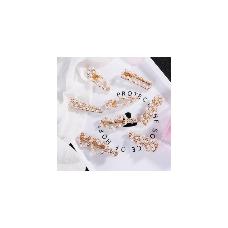 Women Fashion Hollow Heart Imitation Pearl Hair Clips Hairpins for Women Geometric Water Drop Hairgrip Hair Accessories