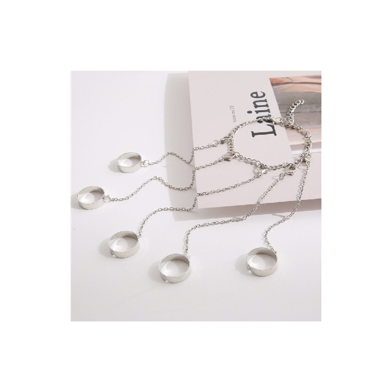 Punk Geometric Silver Color Chain Wrist Bracelet For Women Men Ring Charm Set Couple Emo Fashion Jewellery Gifts Pulsera Mujer