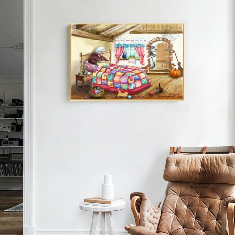 Chinkyo Diamond Painting Oma im Bett DIY Full Round Drill Wandbild 40 x 30