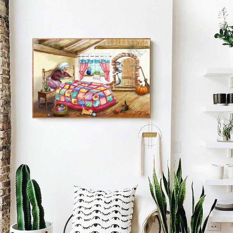 16x12 inch 5D DIY Full Round Drill Diamond Painting Grandma in Bed Mosaic Wall Art Picture of Rhinestone Kit Home Decoration