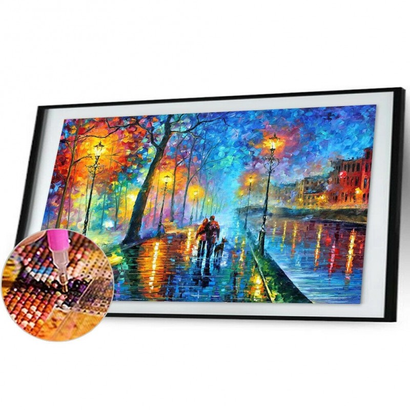 Evening Streets Lights Picture Rhinestones 5D DIY Full Round Drill Diamond Painting Handmade Mosaic Wall Craft Kits Gift Home Decor
