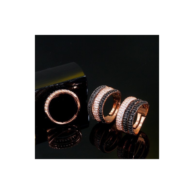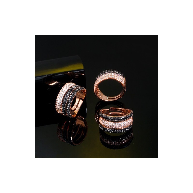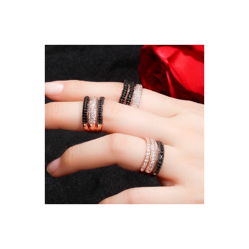 CWWZircons állítható méretű 3 rétegű fekete fehér CZ kő 585 rózsa arany színű nyitott gyűrűk női esküvői eljegyzési ékszer R165