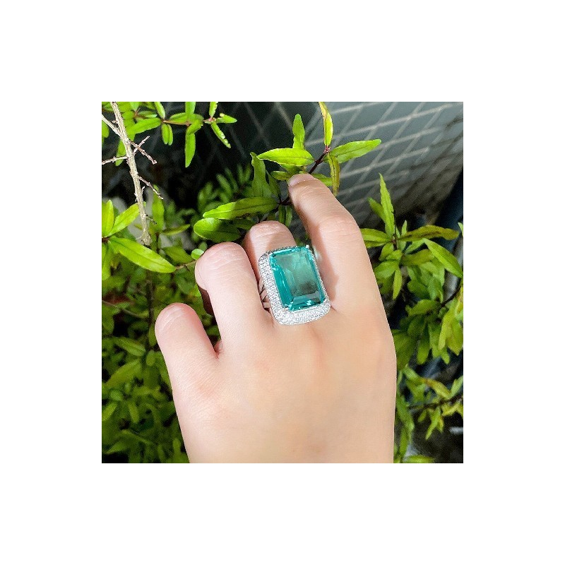 CWWZircons Adjustable Princess Cut Big Green Cubic Zirconia Rectangle Luxury Rings for Women Designer Wedding Party Jewellery R206