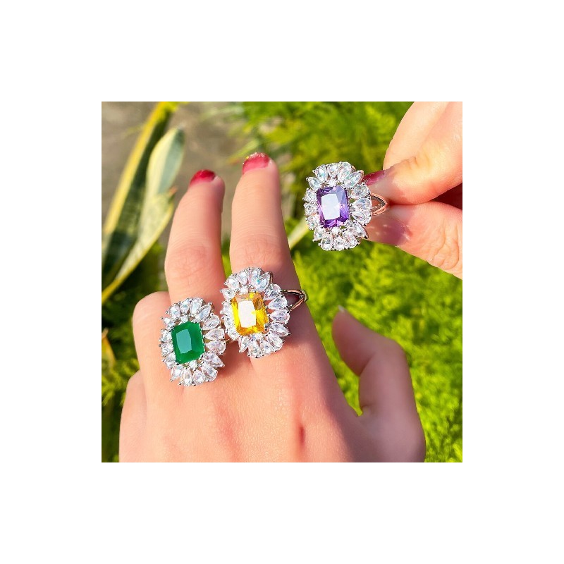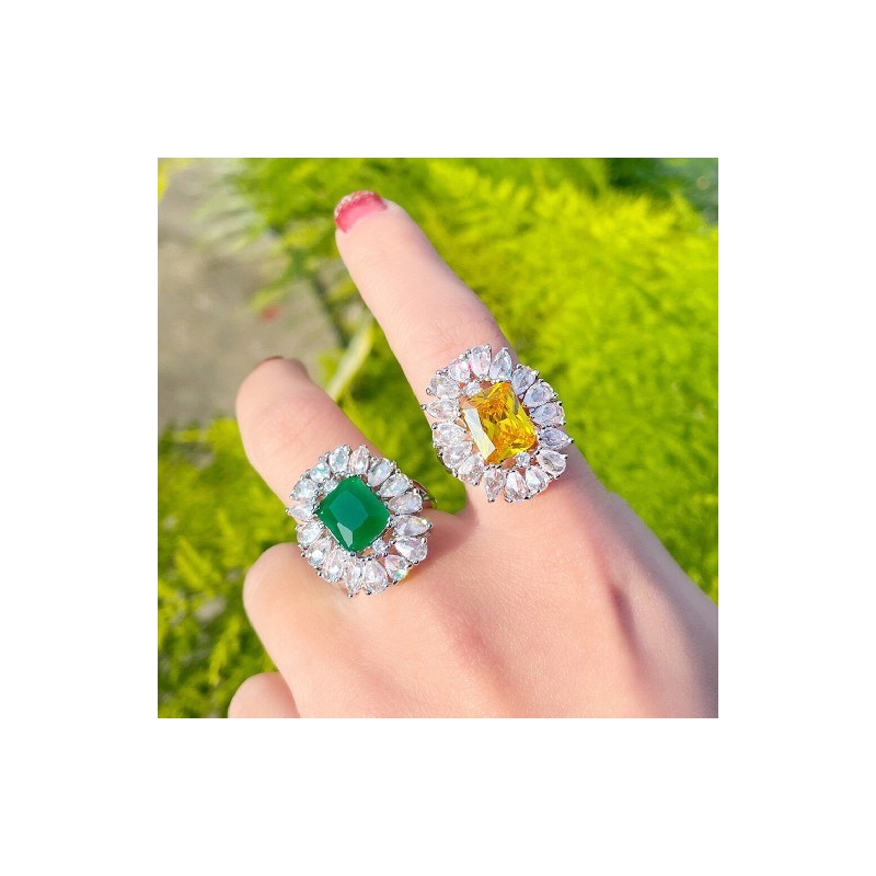 CWWZircons Bright Big Square Green Cubic Zircon Crystal Silver Plated Adjustable Open Rings for Women Engagement Wedding R209