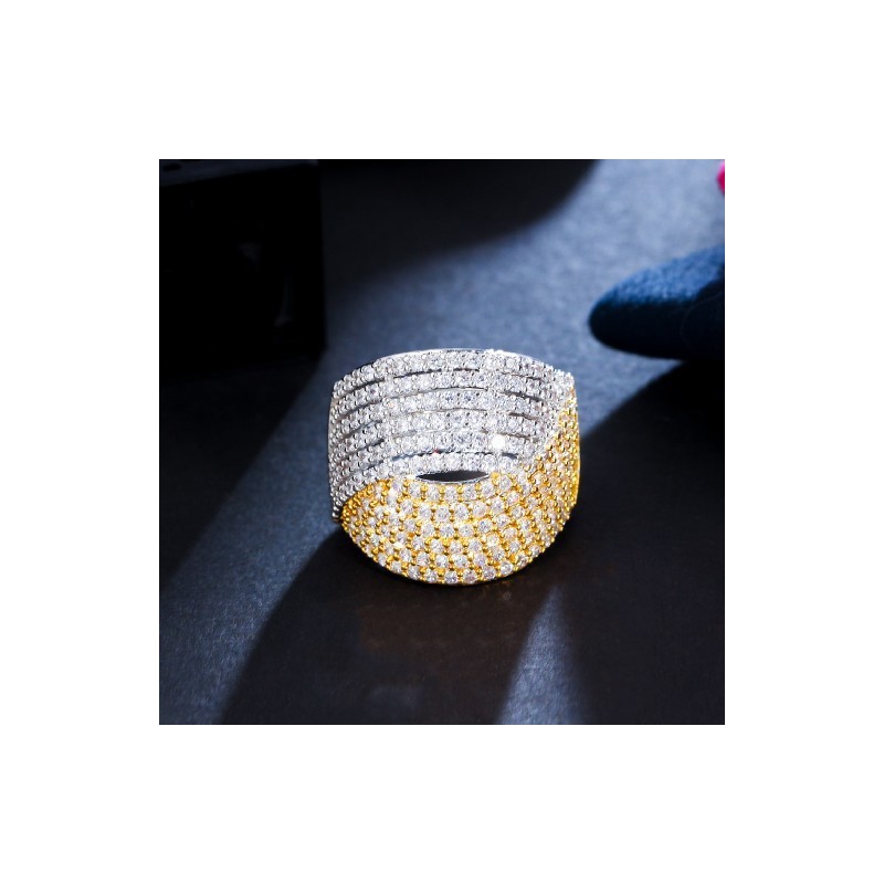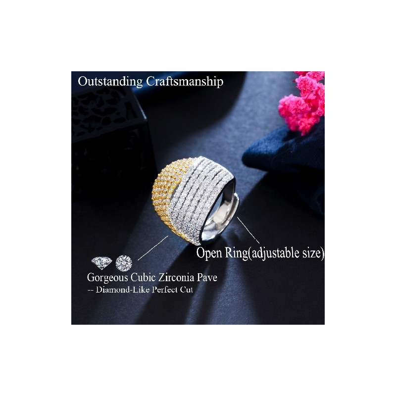 CWWZircons Two Tones White Gold Plated Twisted Line Cubic Zirconia Stone Wide Big Adjustable Rings for Women Jewellery Gift R203