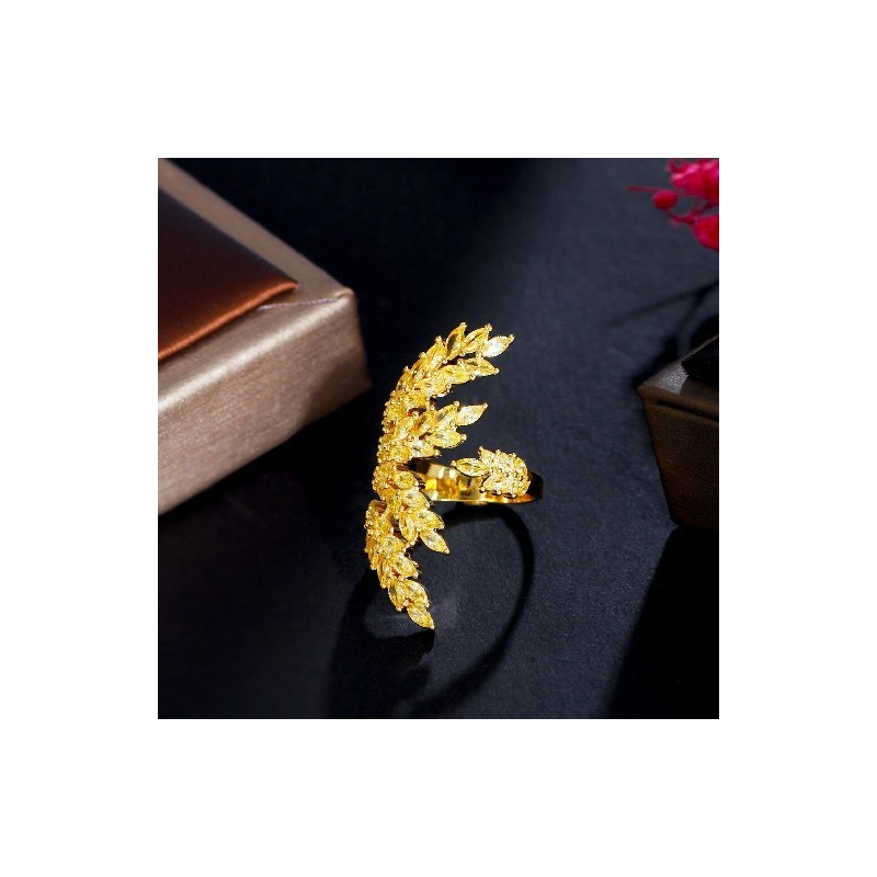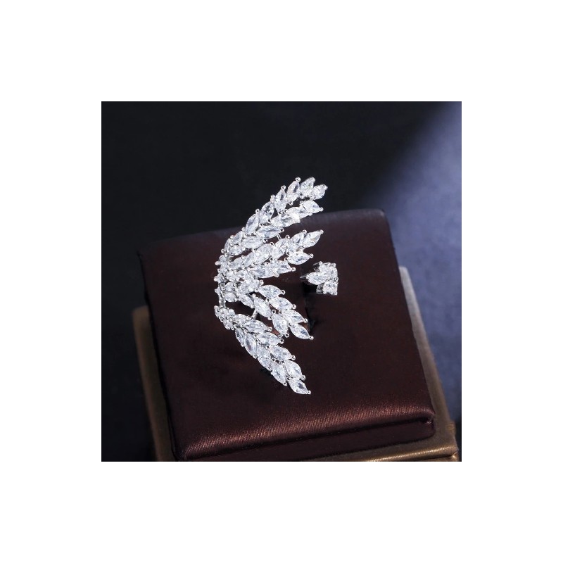 CWWZircons Leaf Shape Shiny Cubic Zircon White Gold Plated Women Big Open Adjustable Finger Ring Anillos for Party Jewellery R215