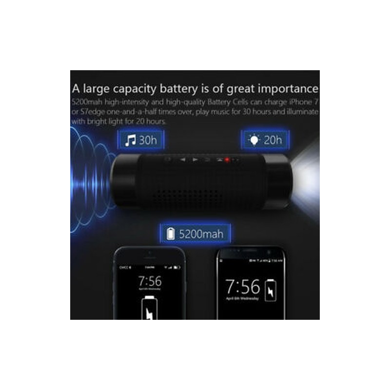 5200mah high-intensity and high-quality Battery Cells can charge iPhone 7, or S7edge one-and-a-half times over, play music for 30 hours and illuminate with bright light for 20 hours.