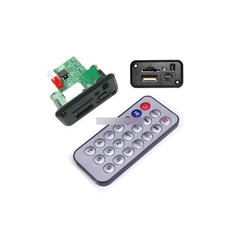 GND, audio ground; L-O, left audio output. GND, audio ground; R-O, right audio output; GND, audio ground; L-O, left audio output. (Note: just audio output, can not directly pick up the speaker, need to connect amplifier)Special instructions: current 600MA-1A, the current is not enough to jump or remote control and other phenomena (if you have this problem please check your power); see the above figure should pay attention to the product can not be connected to the two groups of power supply voltage can not be higher than The maximum voltage required for the product will damage the main chip and related components!Package included:1*5V12V Mini MP3 Decoder Board USB TF Reader IR Remote MP3 Player for Car