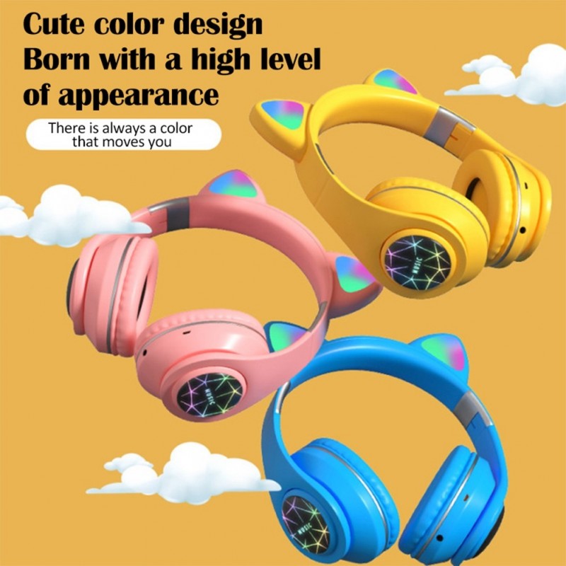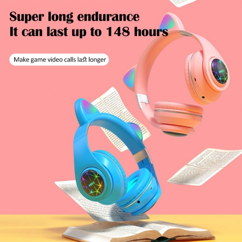 Cute Cat Bluetooth 5.0 Headset Wireless Hifi Music Stereo Bass Headphones LED Light Mobile Phones Girl Daughter Headset For PC