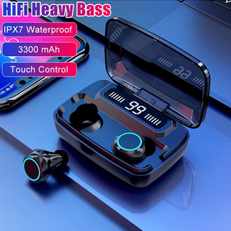TWS Bluetooth 5.0 Earphone LED Digital Touch Bluetooth Earphone HiFi Heavy Bass Earphones IPX7 Waterproof 3300mAh Charging Box With Mic