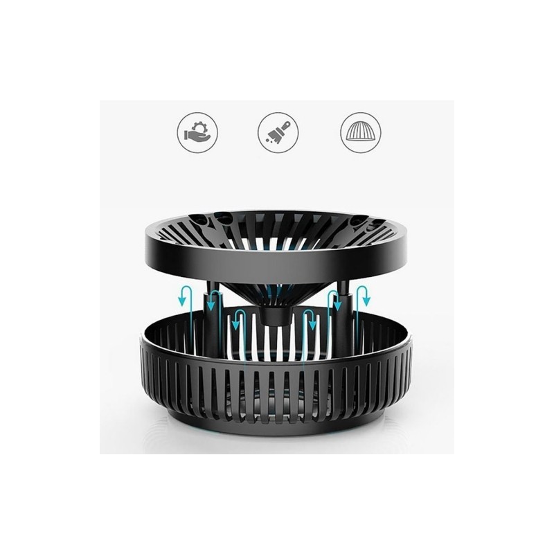 With DC5V, plug in the USB directly and tap on the top switch. (Lightly press: Strong wind mode; Tap twice: Mid-range wind power; Tap three times: Silent sleep mode)