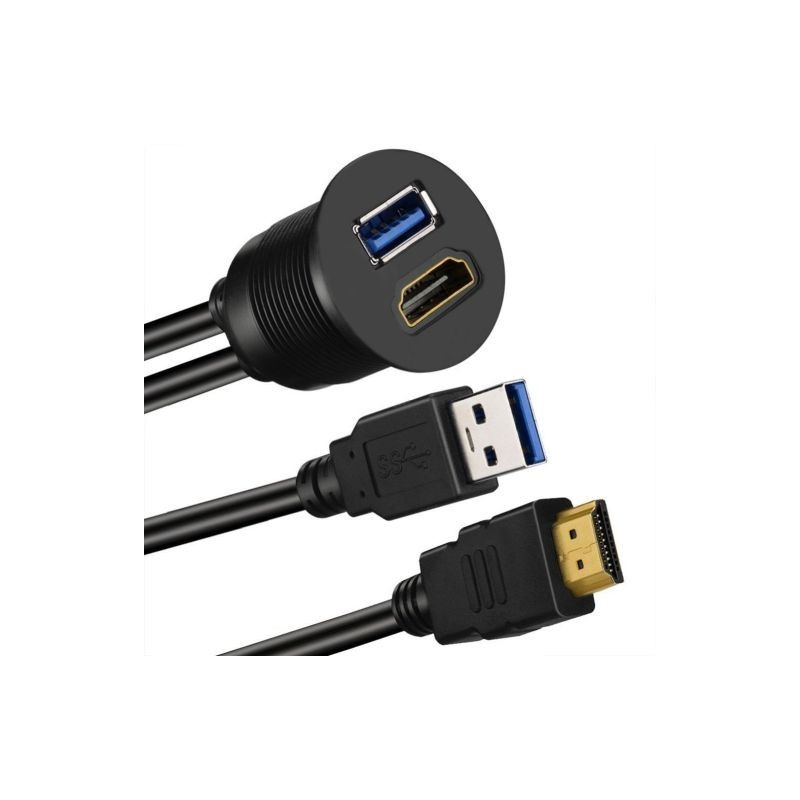 USB 3.0 And HDMI-compatible To HDMI-compatible USB3.0 AUX Expansion Dashboard Waterproof Car For Embedded Mounting Cables