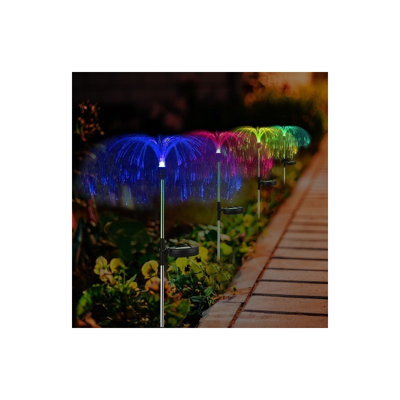 2pcs LED Solar Light Outdoor Fiber Optic Jellyfish Lamp RGB Color Changing Solar Garden Lights Courtyard Pathway Landscape Decor