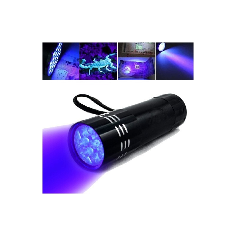 This is an UV ultra violet LED flashlight with 9 LED bulbs. It's aluminum body makes it light weight and portable. It also has a service life of up to 10,000 hours. It is perfect for camping, outdoors, around the house and many other uses. The Listing picture features an actual LICE EGG on a strand of hair being made flourescent by our actual UV Flashlight