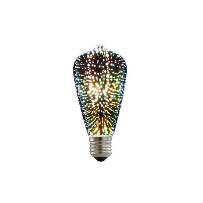 This 3D decorative light bulb can create gorgeous lights with its 3D effect. Moreover, it`s environmental friendly and eye protected without flash and UV or IR radiation. With it, you can possess your colorful life.it`s easy to get and install, no more tools.APPLICATION SCENE: it can be widely used in home, cafe, bar, party, wedding, show, ornament store, etc.Light color:RGB Specifications:Voltage: 85V-265V Frequency: 50/60HZLight effect: 3DWattage: 6WBase type: E27Filament: A60Illuminating angle: 360 degreePF: 0.5Material: GlassBulb size: 60*120mm / 2.4 inch * 4.7 inch (H * D)Bulb weight: 32.0g / 1.1ozPackage list:1 x ST64 3D Decorative BulbNote: Light shooting and different displays may cause the color of the item in the picture a little different from the...