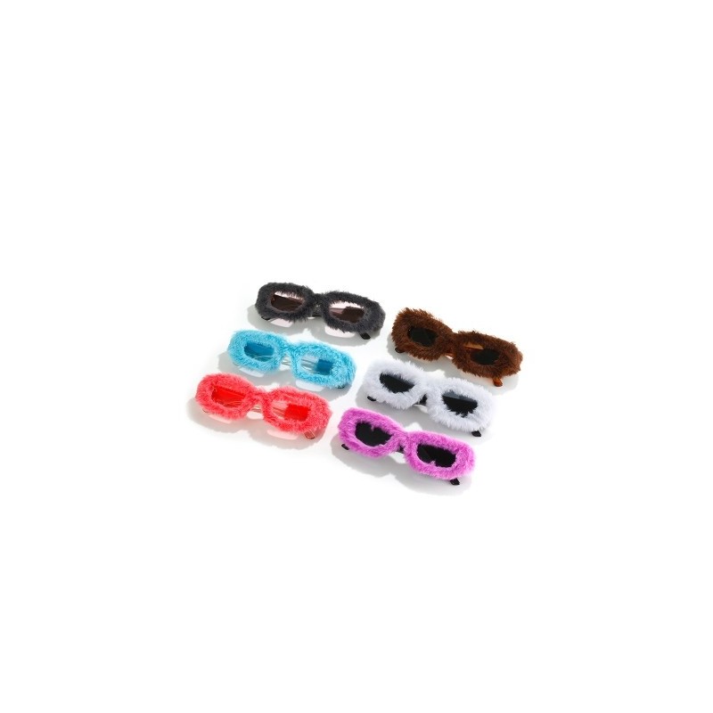 Furry Frame Rectangle Sunglasses Women Funny Party Eyewear Multi Colors Decoration Vintage Eyewear Shades UV400 Protection New