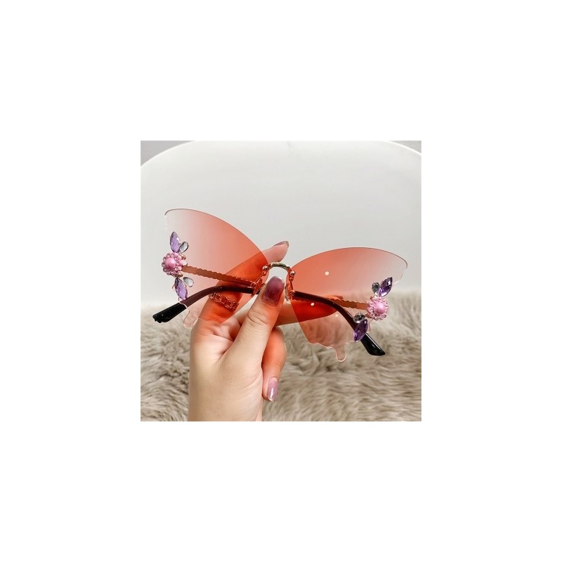 Luxus Designer keret nélküli kristály pillangós napszemüvegek Vintage márkájú ernyők női keret nélküli napszemüvegek Bling gyémánt szemüvegek