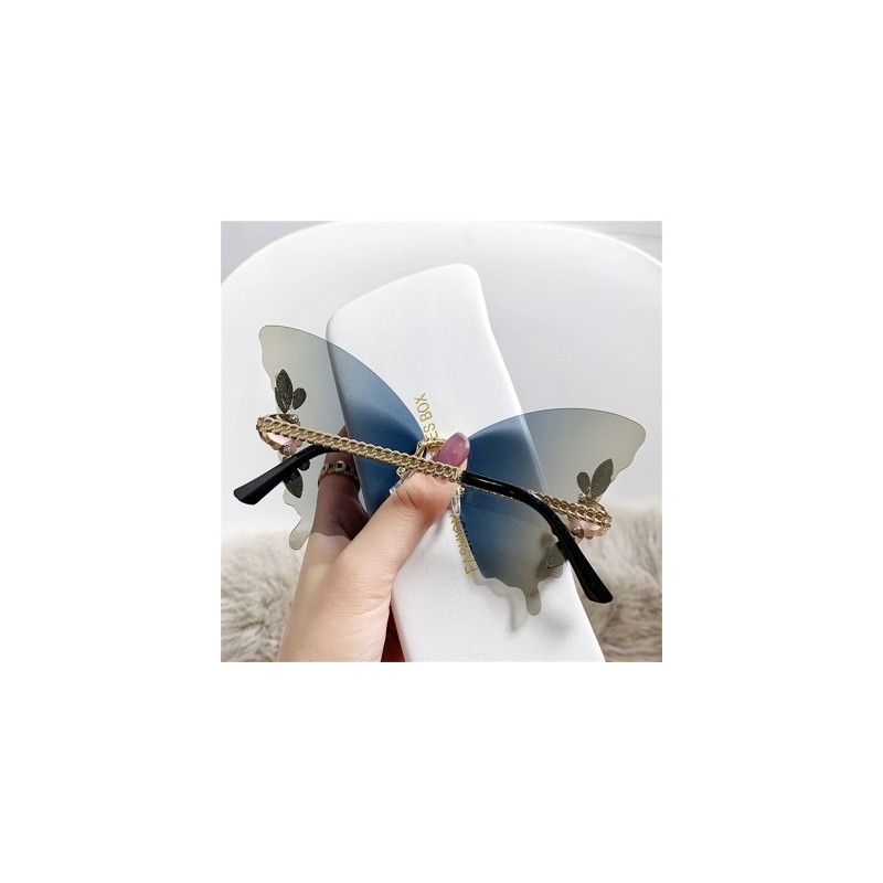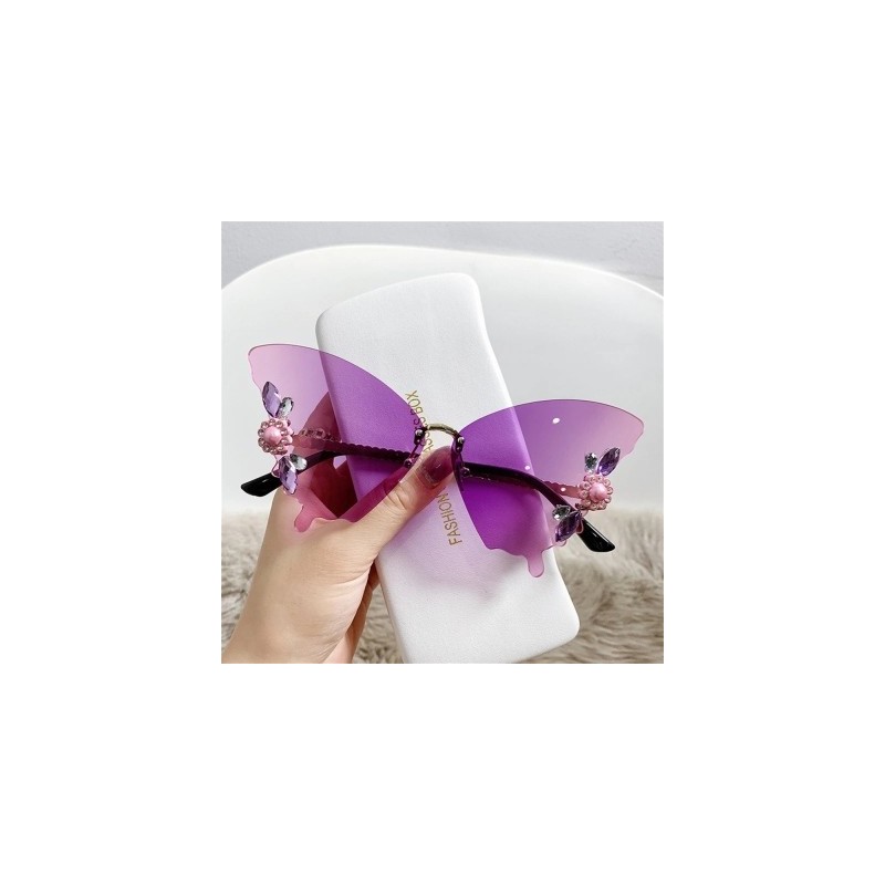Luxus Designer keret nélküli kristály pillangós napszemüvegek Vintage márkájú ernyők női keret nélküli napszemüvegek Bling gyémánt szemüvegek