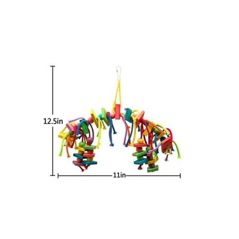 Simply hang one of these multicolored hanging bird toys in your parrot`s cage and watch him or her begin to explore, climb, play, preen and chew. The exercise sharpens the bird`s foraging skills, strengthens the muscles, engages his or her mind and allows for excess energy to be expelled. The end result of interactive playtime is a happy, healthy bird.