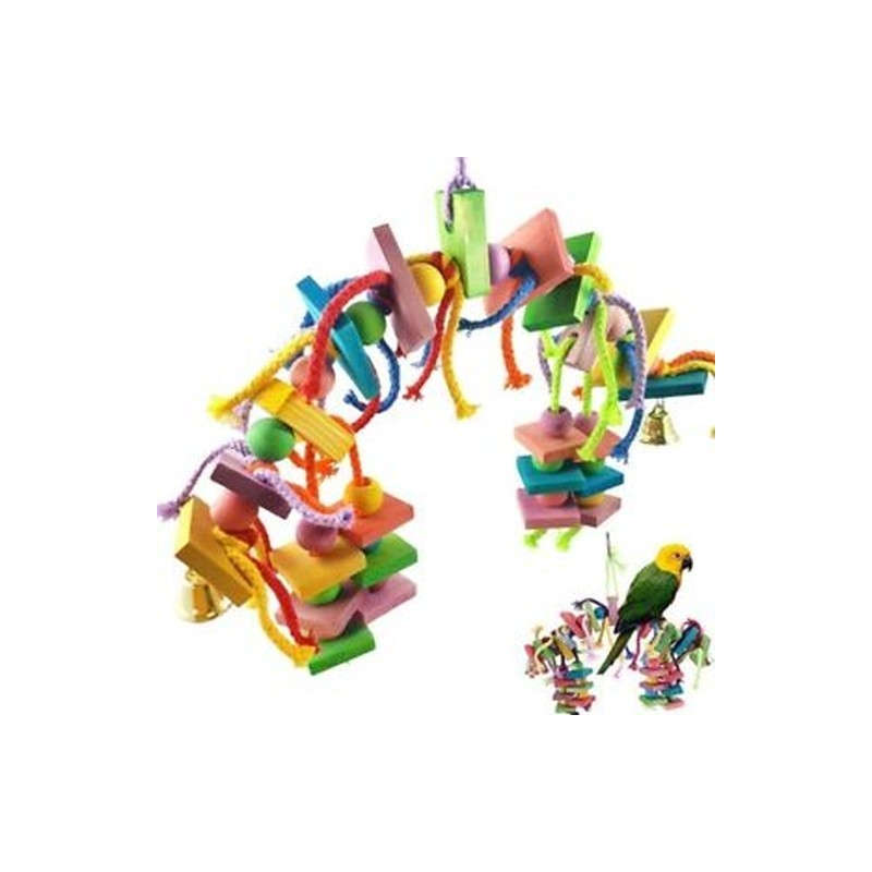 If your parrot tends to chew through his or her toys or is simply not interested in most of cage toys he or her has now, these wooden block bird toys are just what you need to offset birdie boredom. Comprised of blocks made out of 100% natural wood, strung with rope and for secure hanging, our large parrot toys are quite strong and rather dependable.