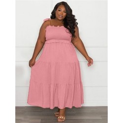 Szín: rózsaszín 4XL - Nagy méretű ruhák 4xl édes női szexi tömör pólya nagy szegélyű maxi ruha új stílusú forró