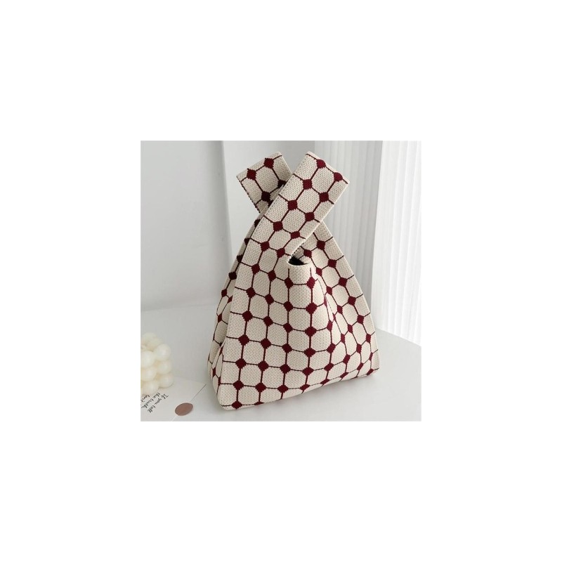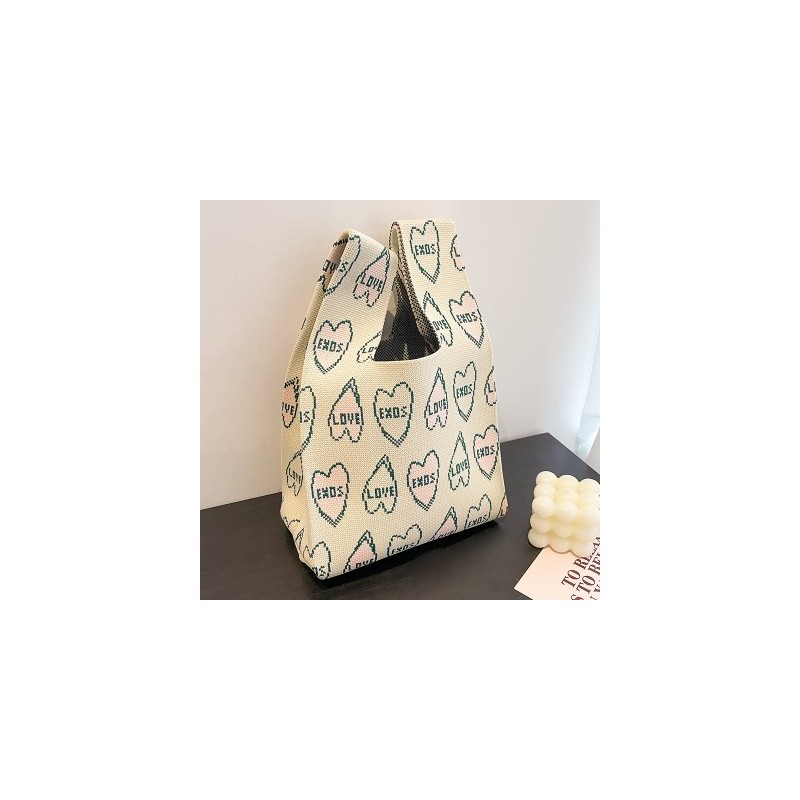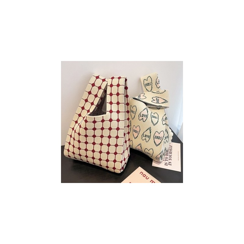 Summer Fashion Daily Knitted Handbag Personality Love Plaid Color Patchwork Single Shoulder Wrist Bag Portable Shopping Bag Gift
