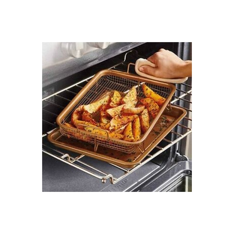 Copper Crisper Tray Oil Frying Baking Pan Non-Stick Chips Masket Crisping B L5I3