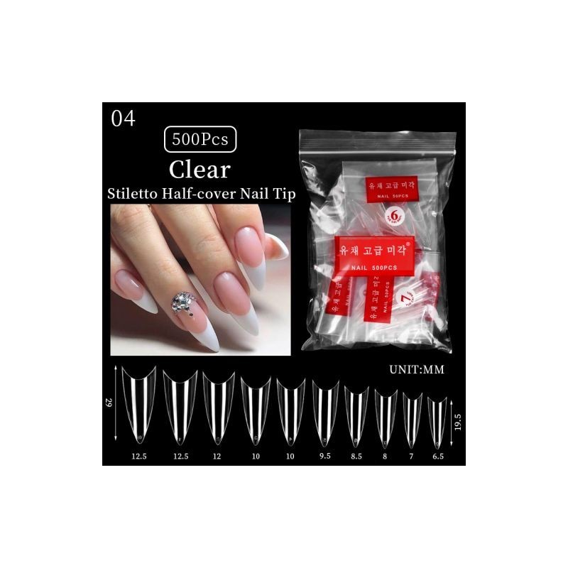 500/504 db üreges szívű francia műköröm hegyek, nyomva átlátszó, félig teljes fedésű mesterséges műkörömdíszítő kapszula meghosszabbításhoz, barkácsolás