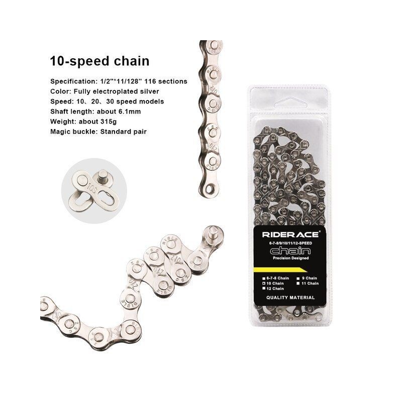 RIDERACE kerékpárlánc 116L 8 9 10 11 12 sebességű ezüst ultrakönnyű hegyi országúti kerékpárlánc 24/27/30 változó sebességű lánchoz