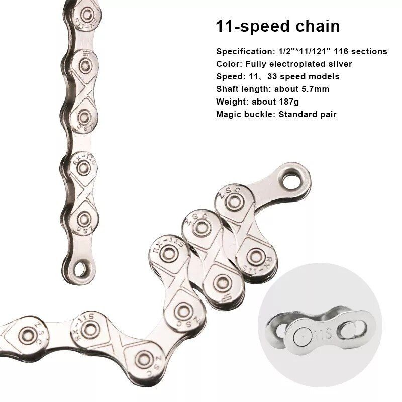 RIDERACE kerékpárlánc 116L 8 9 10 11 12 sebességű ezüst ultrakönnyű hegyi országúti kerékpárlánc 24/27/30 változó sebességű lánchoz
