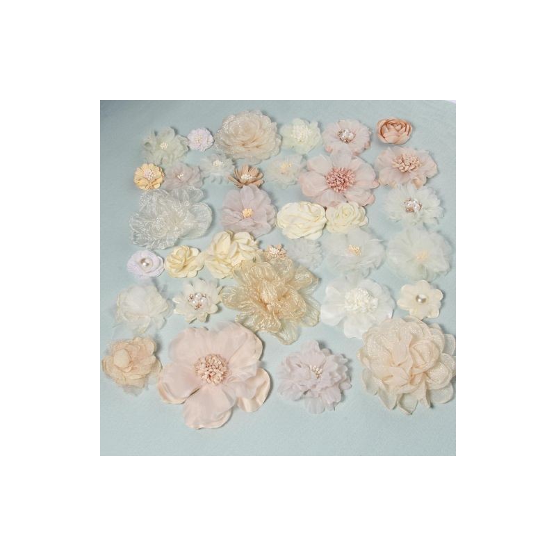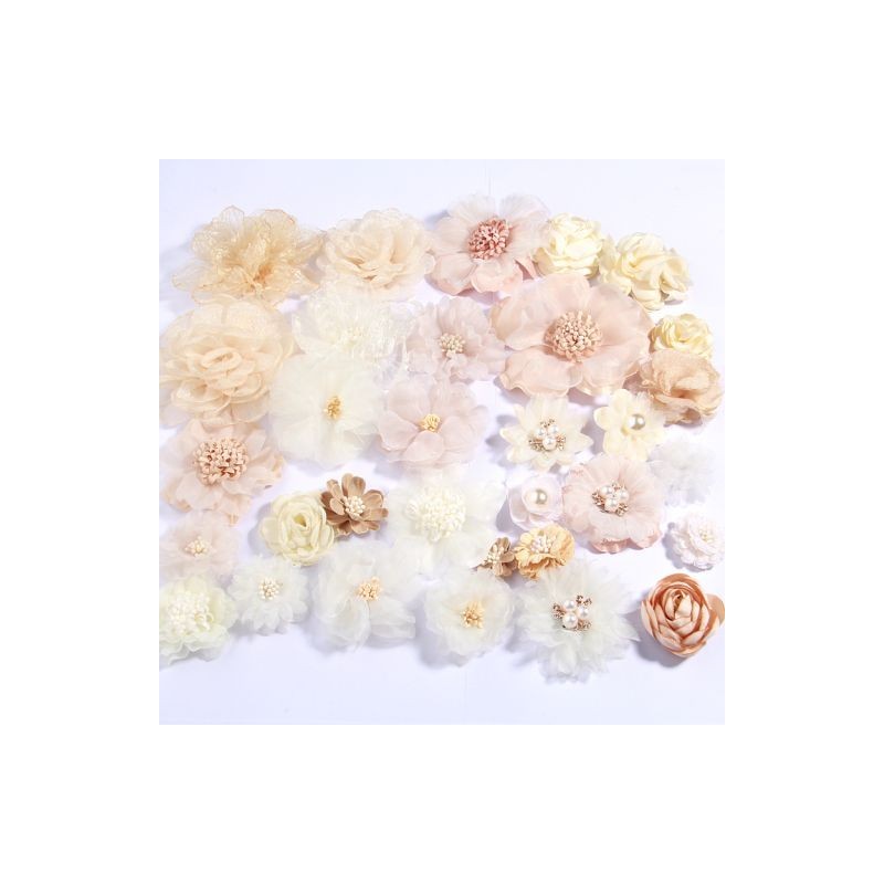 5 db Ivory Cream Series Camellia Rose Chiffon Kézműves szövet virágok fejpántokhoz Haj Virág Kiegészítők Baba fejfedők