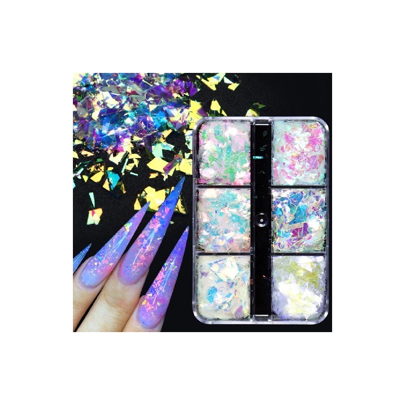 1 Box 6/12 Grids Irregular Cellophane Smash Nail Sequin Glitter Nail Glue Makeup Patch