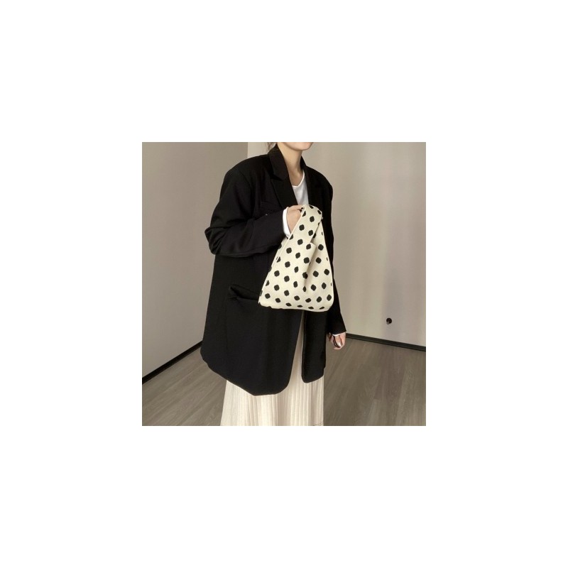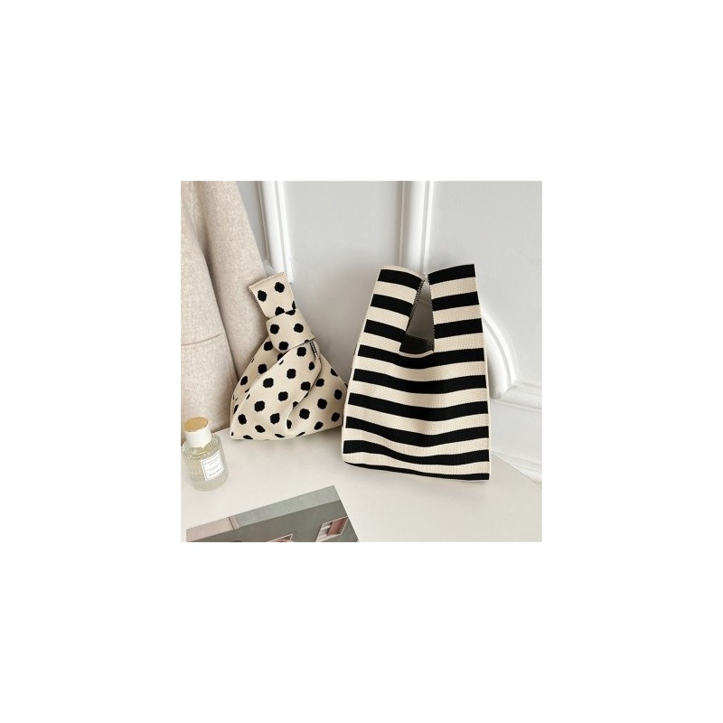 Wide Striped Handmade Knitted Handbag Minimalist 2023 Korean Women Mini Knot Wrist Bag Tote Bag Student Reusable Shopping Bags