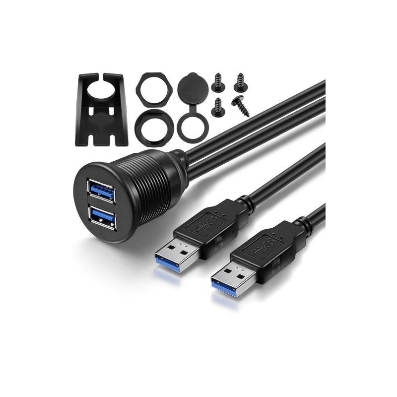 Car Dashboard Flush Mount USB Dock Adapter Dashboard Panel 3.0 Port Male to Female Cable Extension Cable for Motorcycle Boat