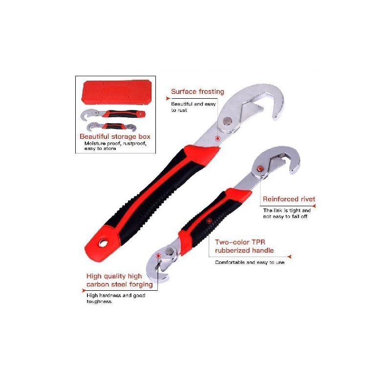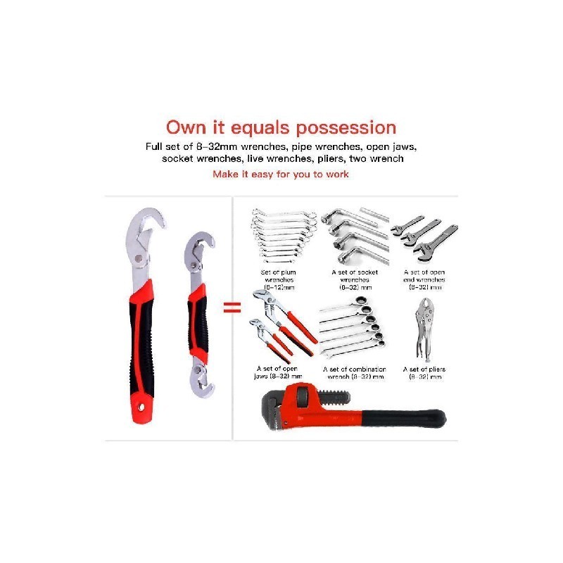 This Universal wrench can be used for tightening or loosening a numerous range of objects from 8~32mm due to its double jaws on both ends of the tool. No need to keep lots of different size of wrenches in your toolbox. Saving your time and very convenient. It can be used for various function without special tools(spanner, pipe wrench, plier screw wrench, electric hand driver, monkey spanner, etc).
