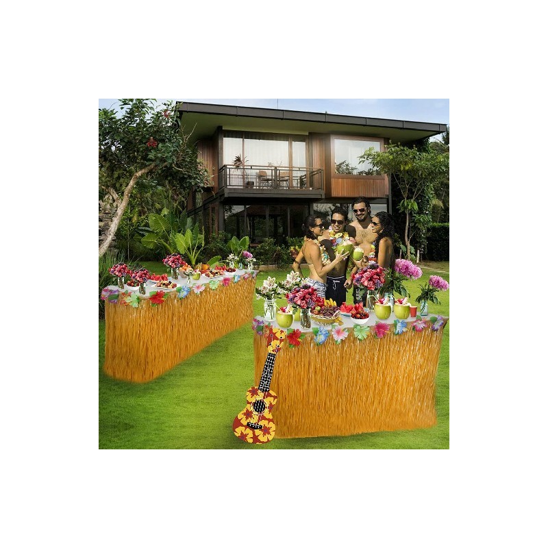 Table Grass Skirt for Tropical Hawaiian Hula Luau Party Decoration Hawaiian Table Skirt Summer Party Table cover Tableware Straw